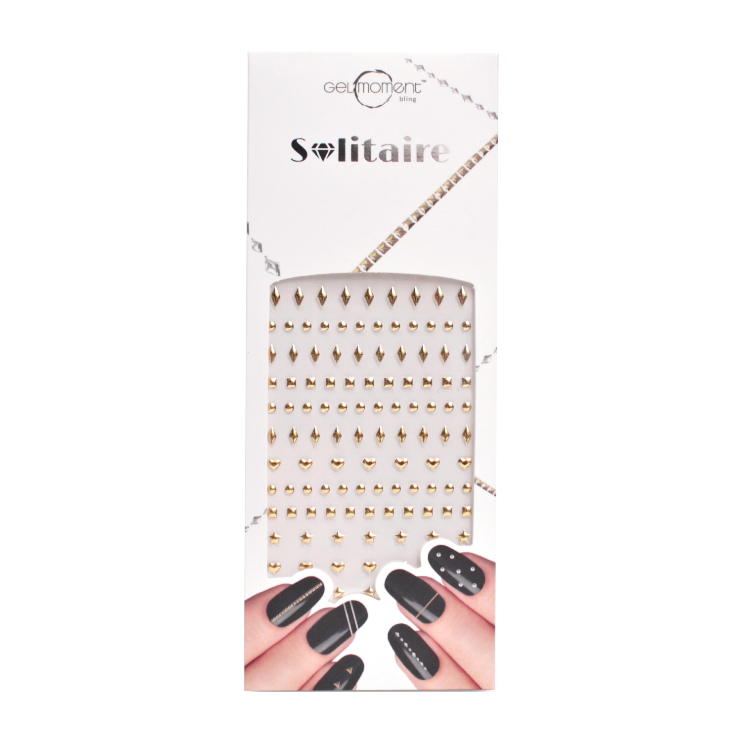 Add some edge to your nail art with these adhesive gold coloured nail studs - the perfect bling for a luxurious lifestyle.